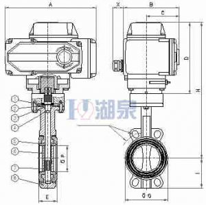 上海湖泉閥門集團有限公司電動蝶閥D971X-16/DN100型號規格及結構詳細圖解型號D971X-16P結構形式垂直板式 口徑40-1200公稱通徑50 安裝尺寸50規格...